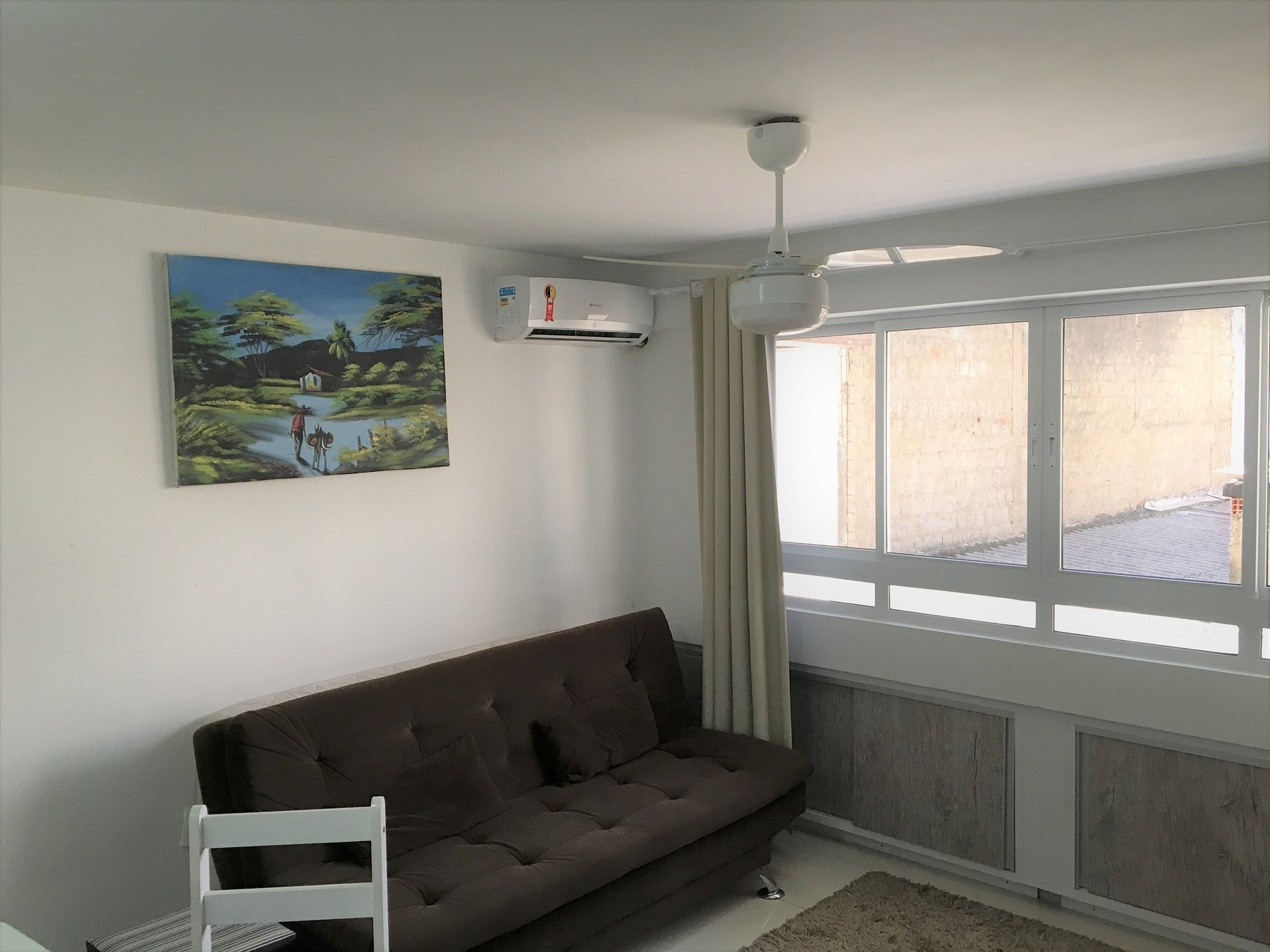 A sala desse apartamento possui TV LCD, sofá cama, ventilador e ar condicionado. Quarto confortável com cama de casal, ar condicionado e armário. Cozinha moderna e compacta com fogão de 4 bocas, microondas, geladeira e utensílios de cozinha. Banheiro cômodo com ducha higiênica, blindex e água quente. Esse apartamento é ideal para sua estadia em João Pessoa, contando com internet Wi-Fi.