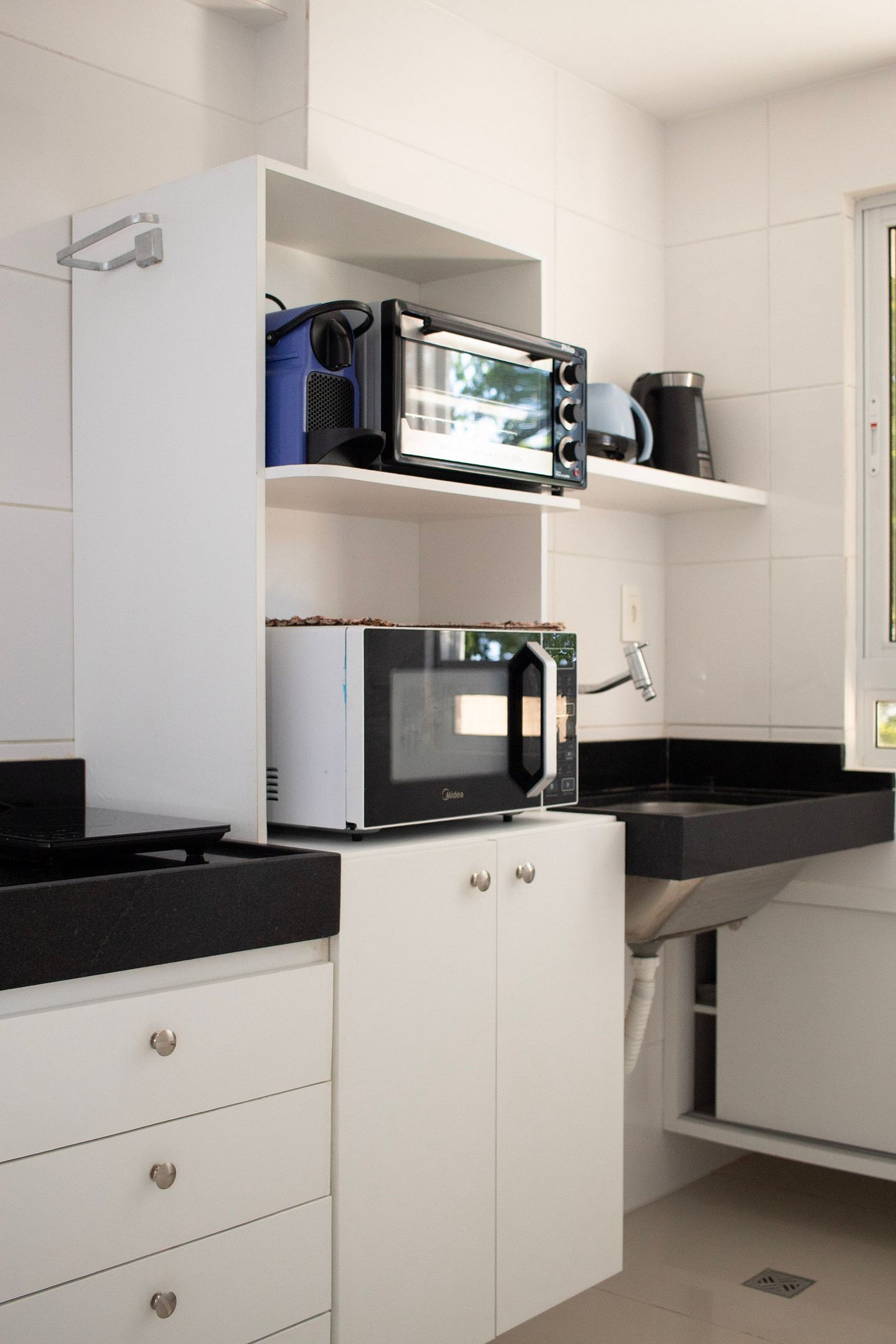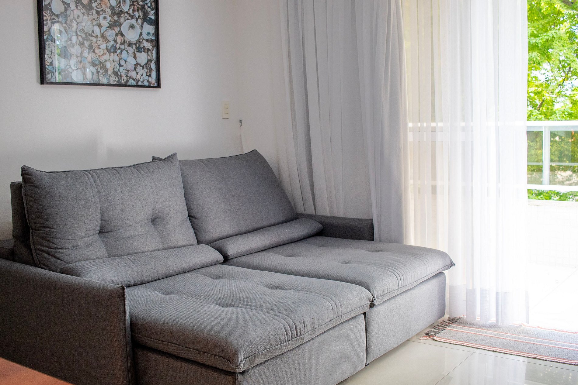 A sala conta com TV LCD, sofá-cama e ventilador. O quarto é confortável, com cama de casal, ar-condicionado e armário. A cozinha é moderna e compacta, equipada com fogão de indução de uma boca, micro-ondas, geladeira e utensílios básicos. O banheiro dispõe de ducha higiênica, box de vidro e água quente. Ideal para sua estadia em João Pessoa, o apartamento oferece internet Wi-Fi e TV.