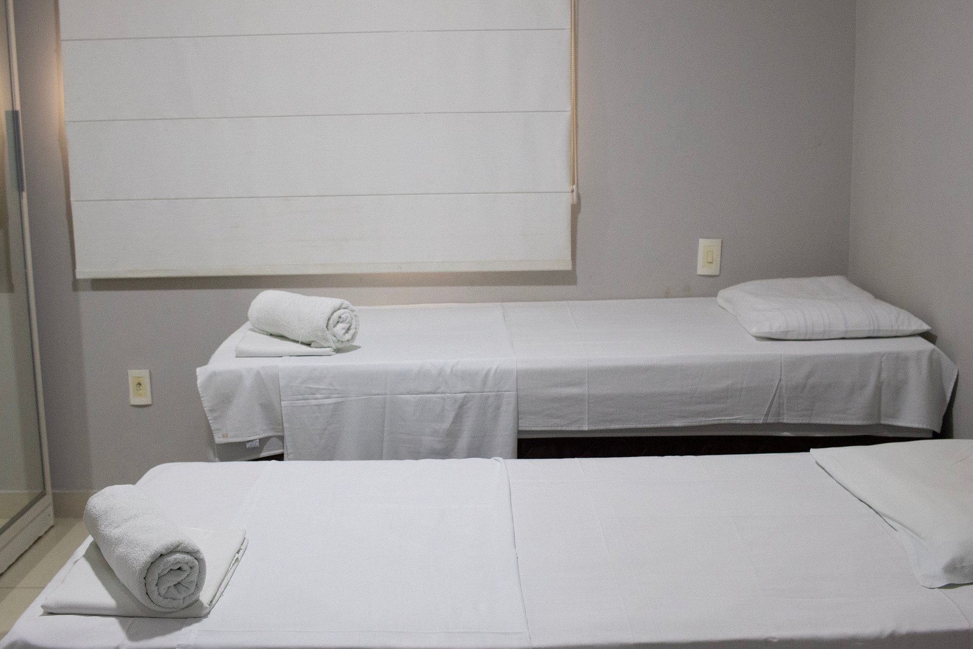 Suíte 2: três camas de solteiro e ar-condicionado.