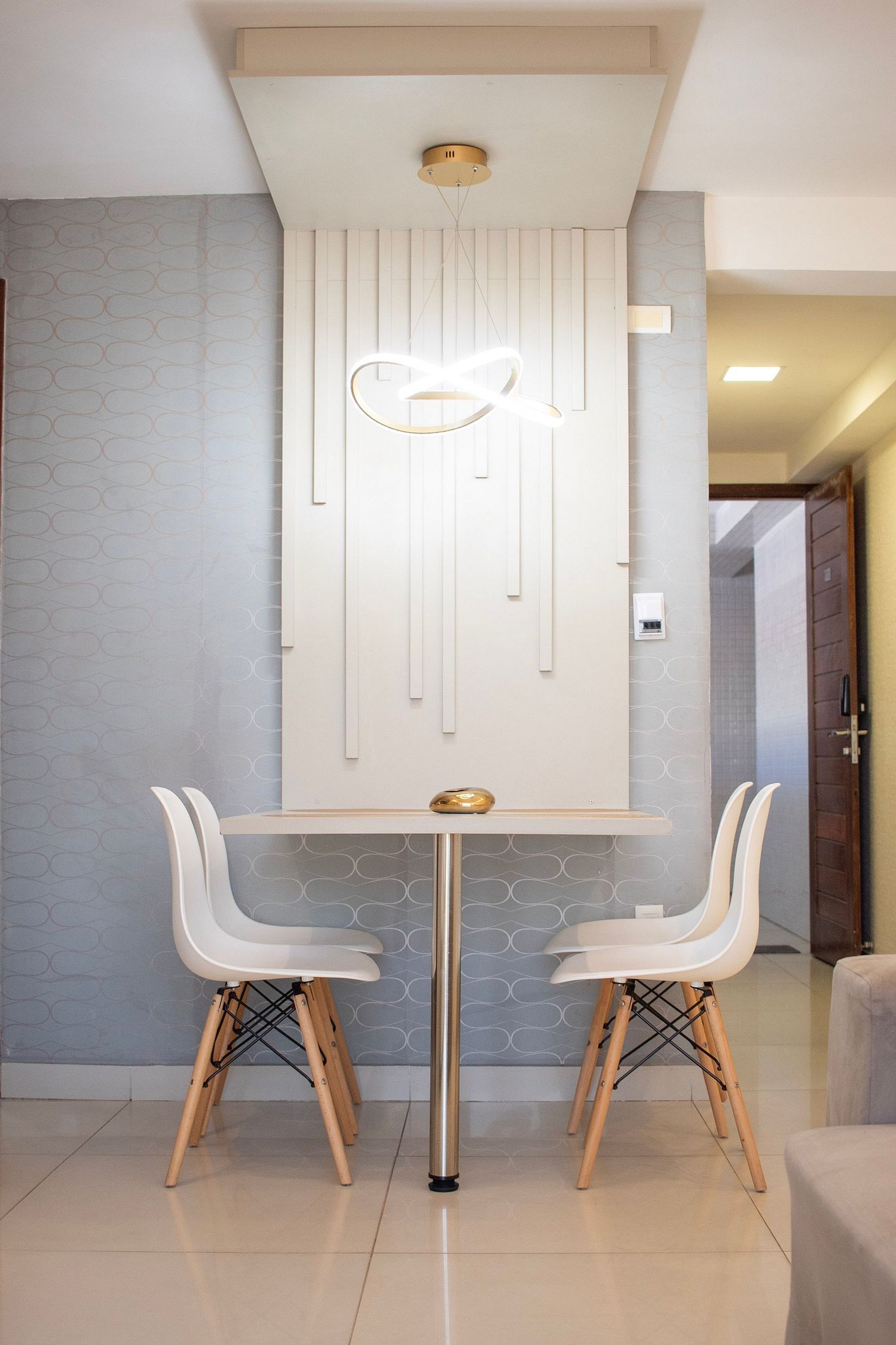 Cozinha moderna e compacta com fogão de 4 bocas, microondas, geladeira e utensílios de cozinha. Banheiro cômodo com ducha higiênica, blindex e água quente. Esse apartamento é ideal para sua estadia em João Pessoa, contando com internet Wi-Fi.