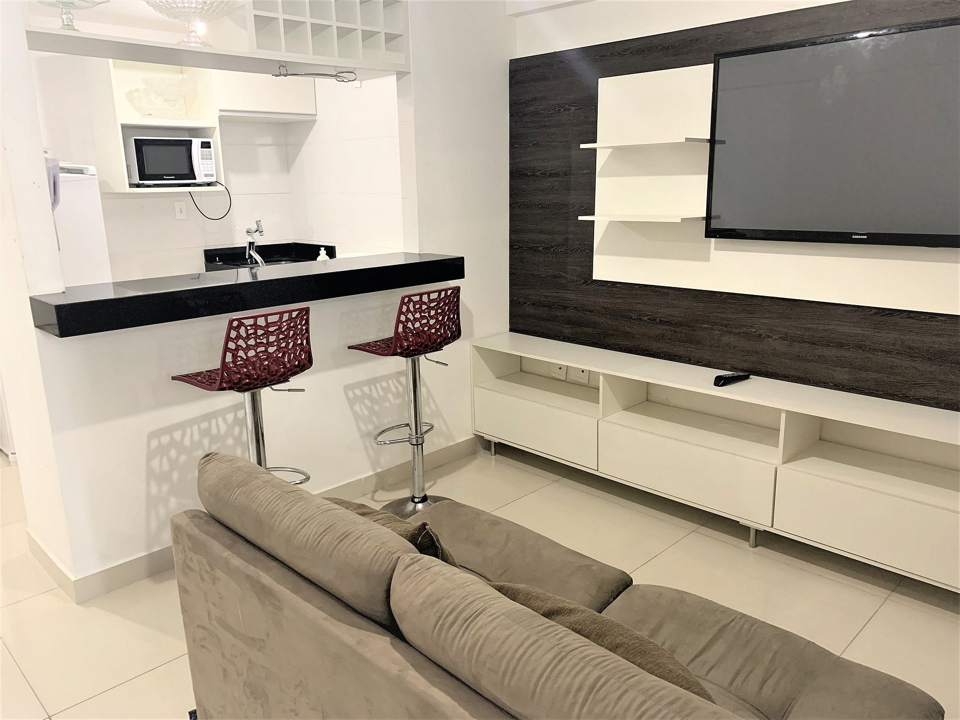 Lindo apartamento de um quarto com vista para o mar para até 4 pessoas no famoso bairro de Tambaú. Trata-se de um imóvel novo, com 45 m² bem divididos em sala, quarto, cozinha e banheiro.