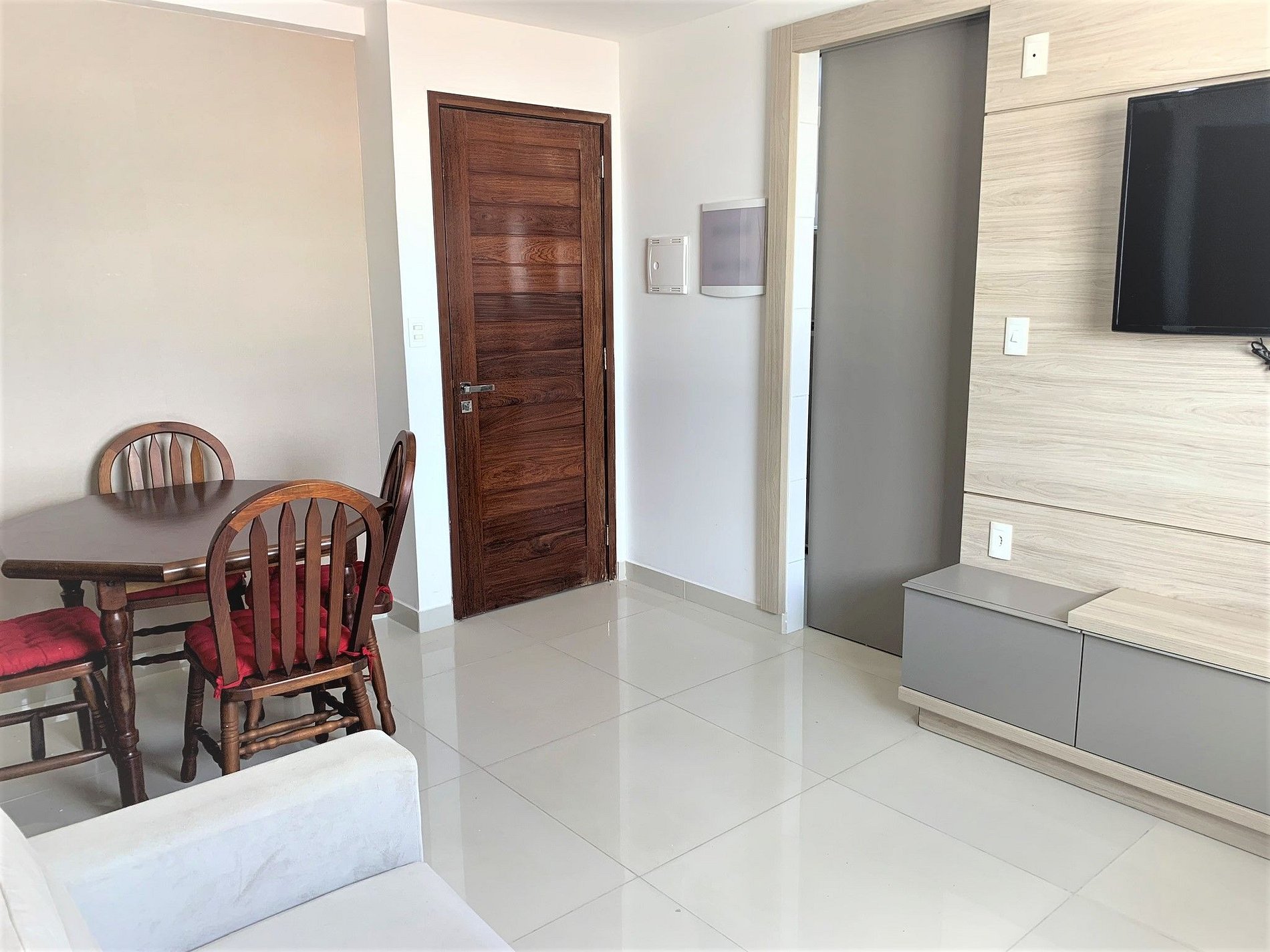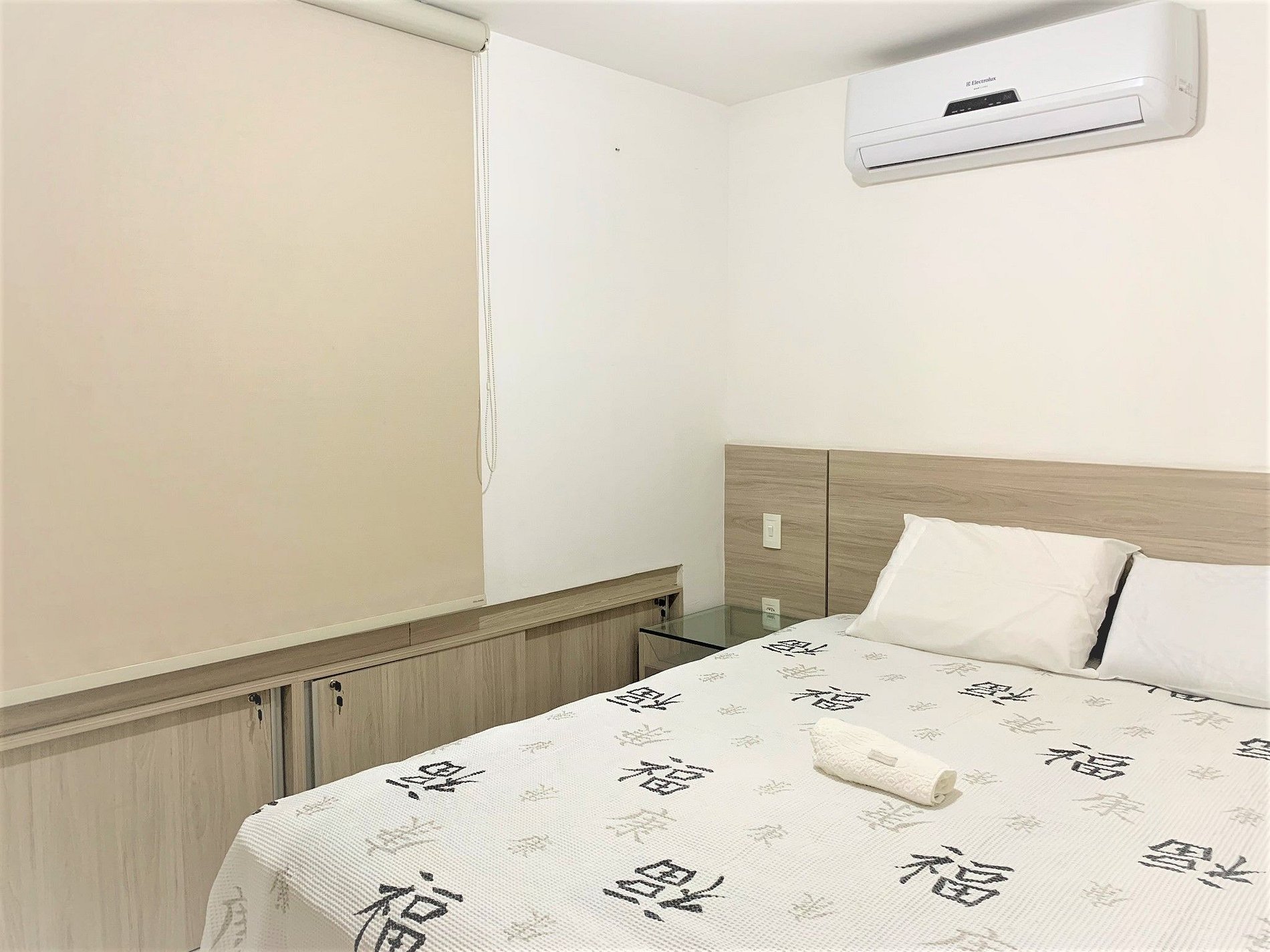 A sala desse apartamento possui TV LCD, sofá cama e ar condicionado. Quarto confortável com cama King, ar condicionado e armários. Cozinha moderna e compacta com fogão de 4 bocas, microondas, geladeira e utensílios de cozinha. Banheiro cômodo com ducha higiênica, blindex e água quente. Esse apartamento é ideal para sua estadia em João Pessoa, contando com internet e TV.