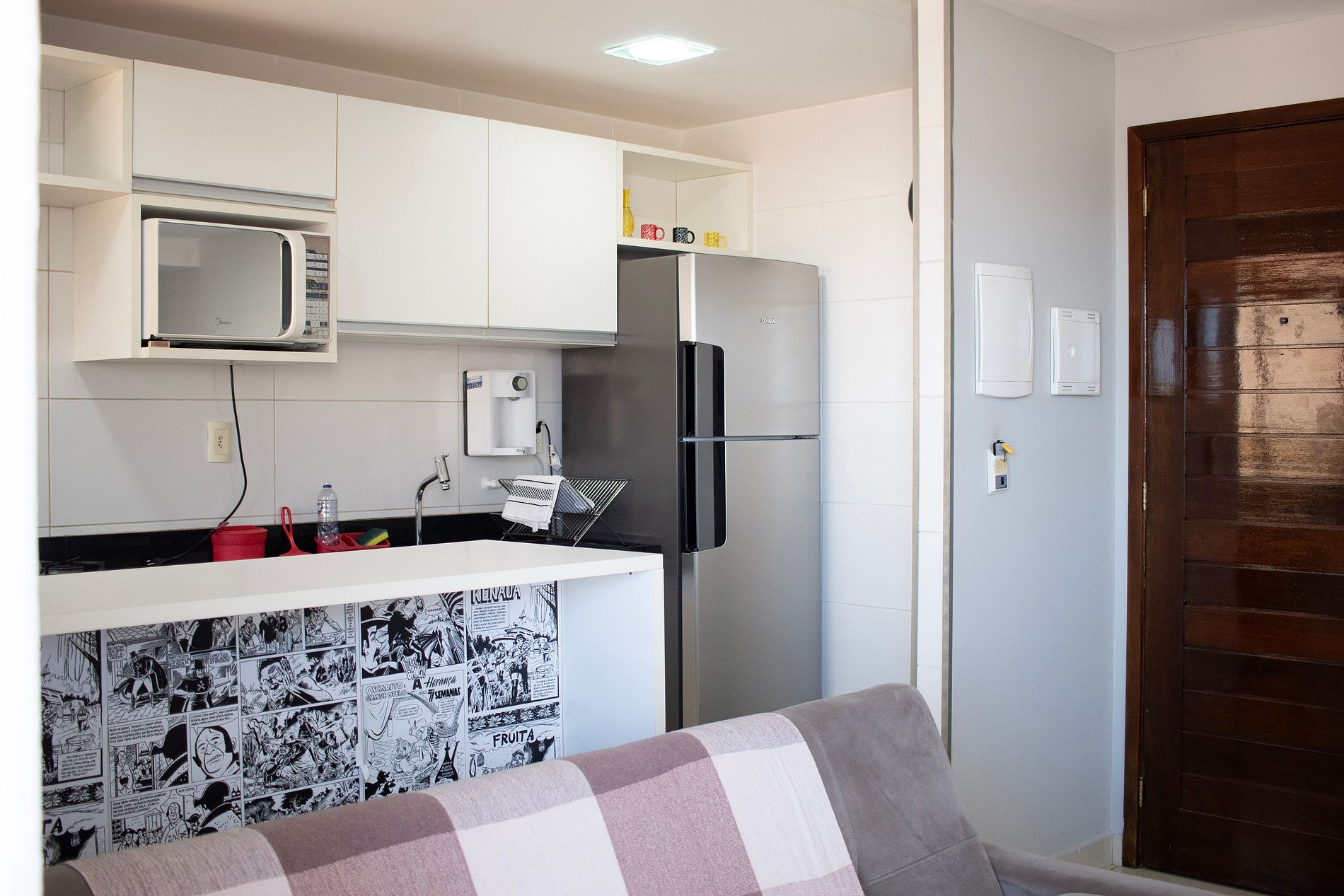 Lindo apartamento de um quarto com varanda e vista para o mar para até 4 pessoas no famoso bairro de Tambaú. Trata-se de um imóvel novo, com 45 m² bem divididos em sala, quarto, cozinha e banheiro.