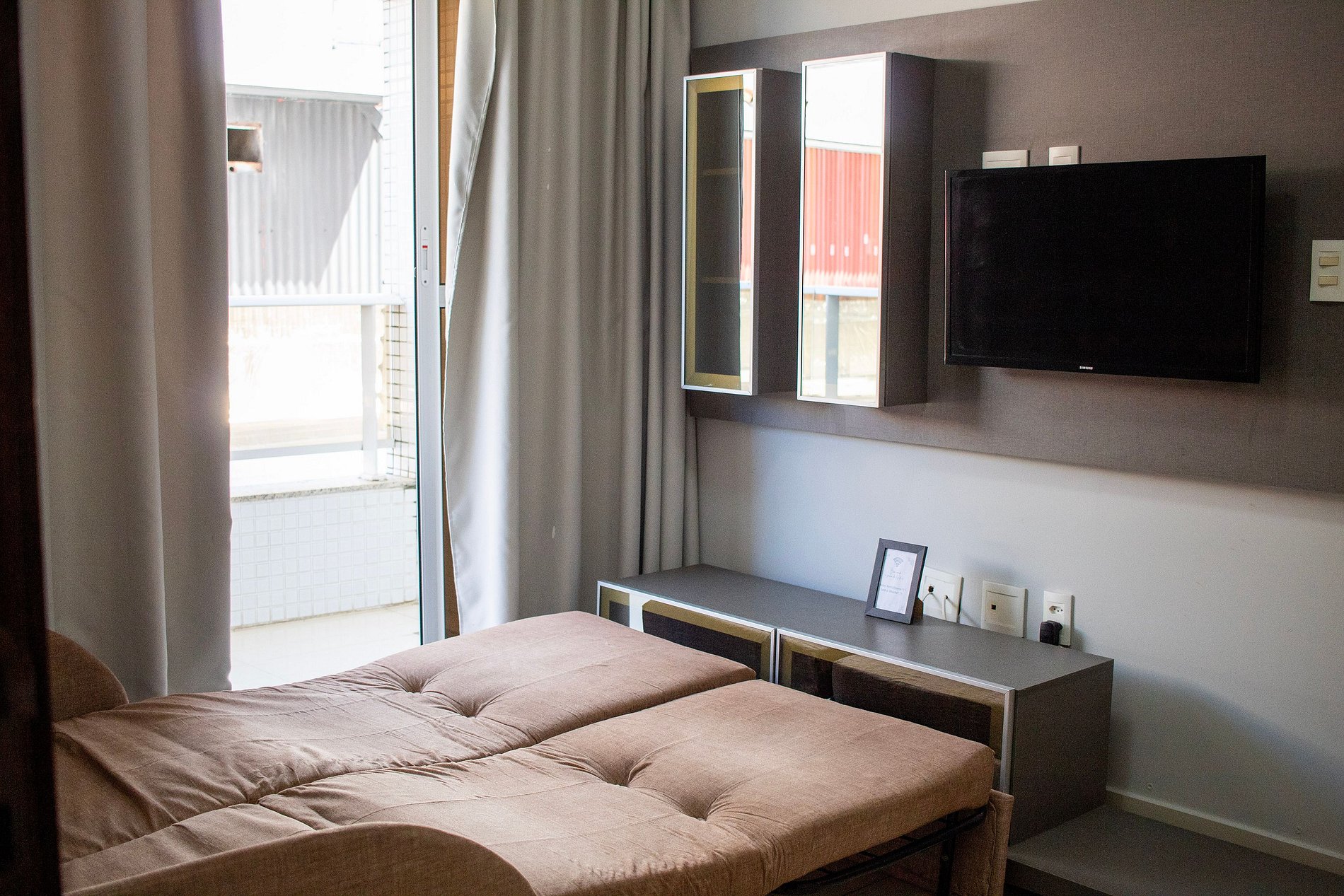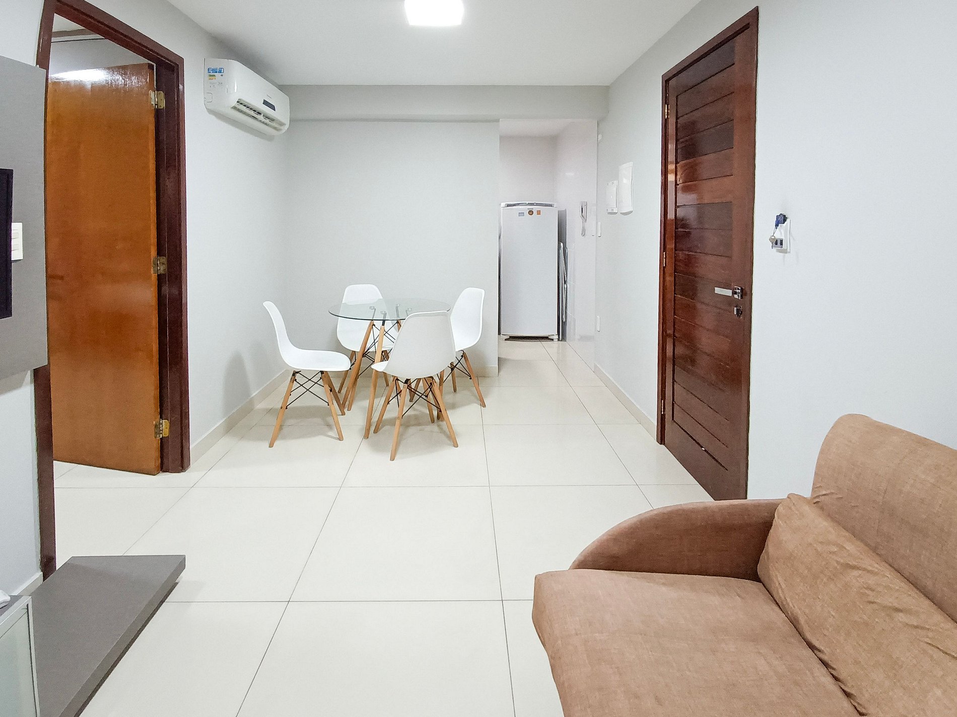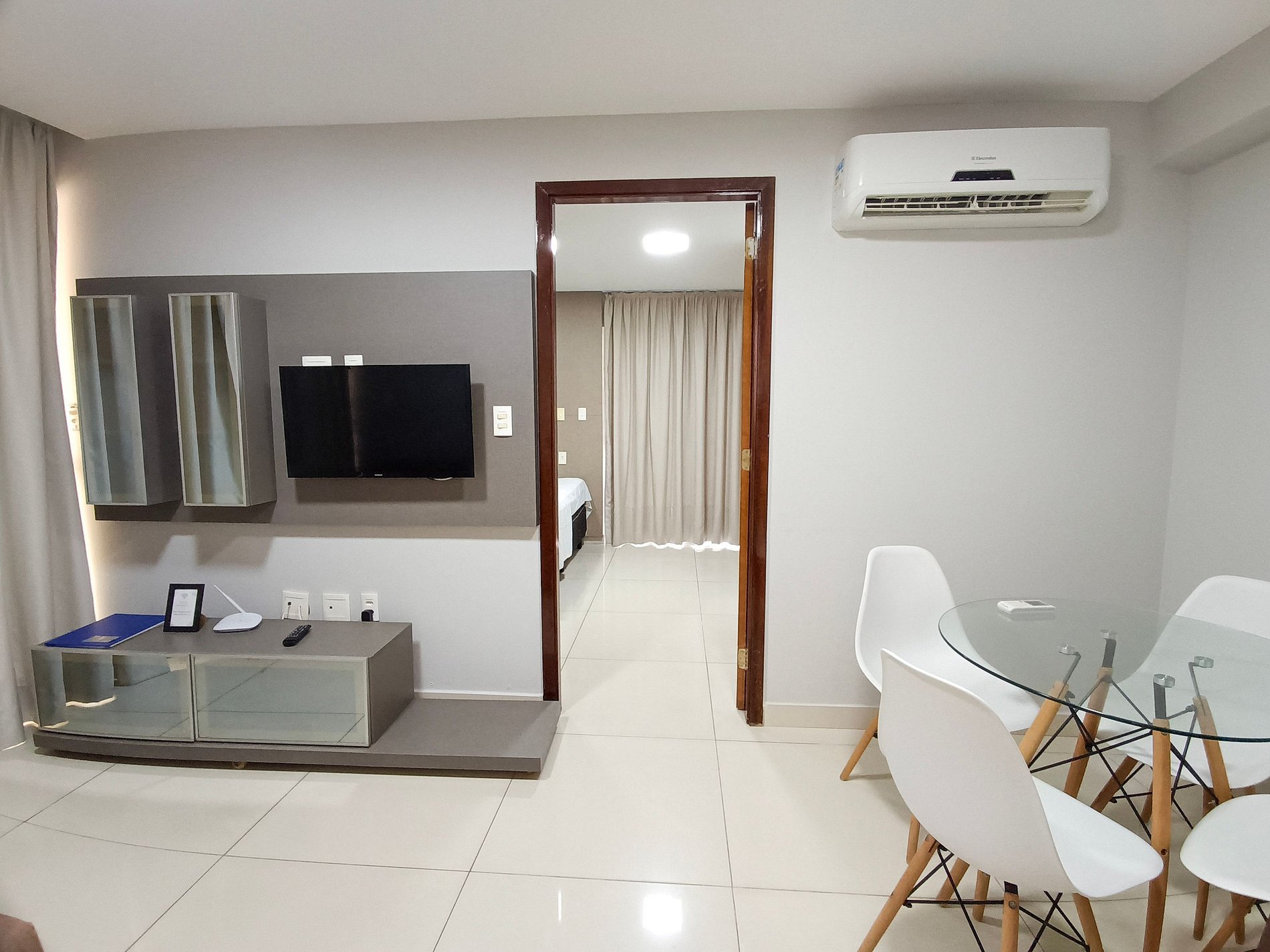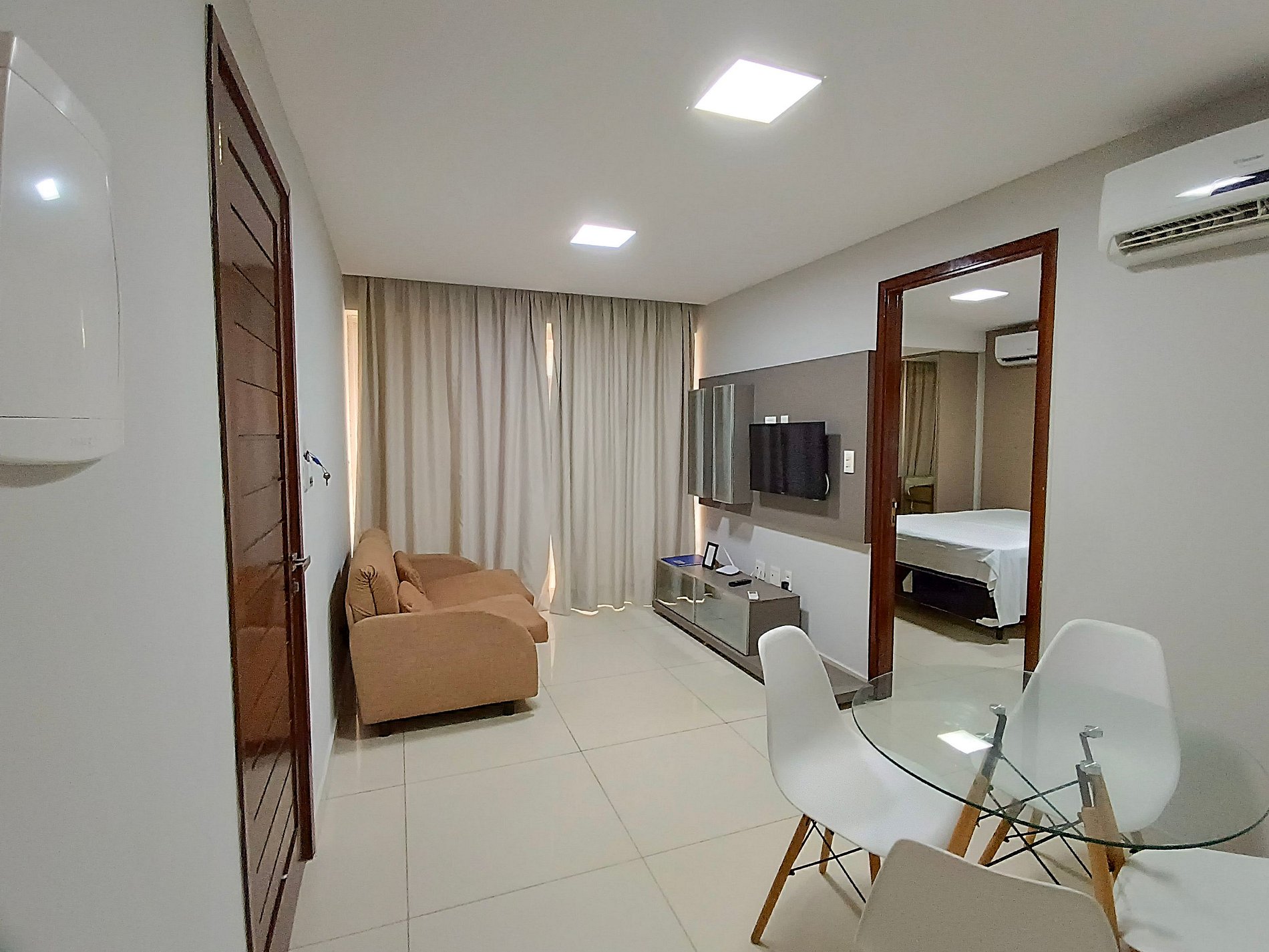 A sala desse apartamento possui TV LCD, sofá cama, ventilador e ar condicionado. Quarto confortável com TV LCD, cama de casal, ar condicionado e armário. Cozinha moderna e compacta com fogão de 4 bocas, microondas, geladeira e utensílios de cozinha. Banheiro cômodo com ducha higiênica, blindex e água quente. Esse apartamento é ideal para sua estadia em João Pessoa, contando com internet Wi-Fi.